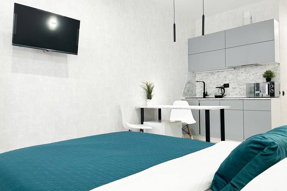 уютная студия. Есть все необходимое. до автовокзала недалеко даже пешим ходом. У дома остановка трамвая 10 и 6.