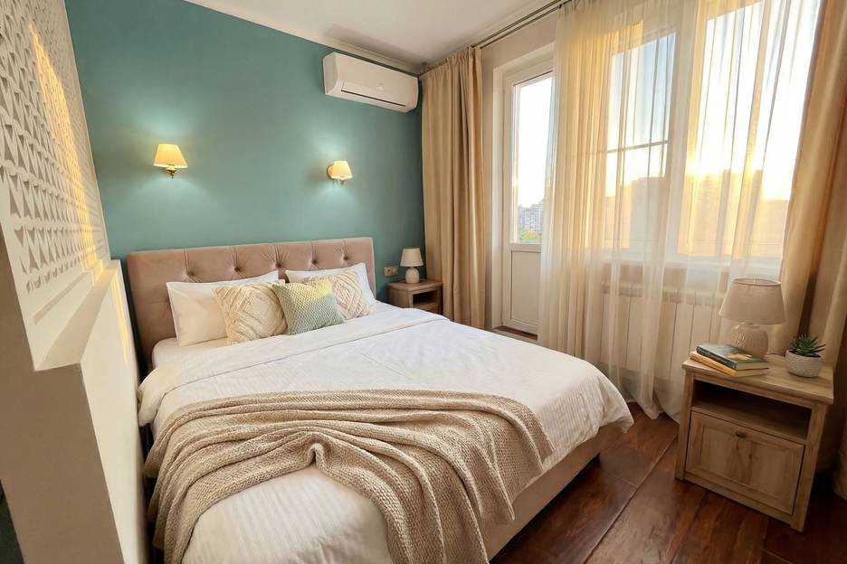 Картинка отличная, в реале не совсем все так. Относительно чисто, белье чистое, но очень плохого качества, 100 процентная синтетика, кровать (вернее матрац на кровати ужасный), чайник не работал, дверь в комнату с дырой (От удара). Заселиться не могли минут 40. Стояла с ребенком и сумкой на этаже у домофона. Начала нервничать и написала в вацап, но никто не ответил на смс(вернее ответили намного позже), впоследствии выяснилось, что приложение не сработало. Полотенца оч изношены и застиранные.
