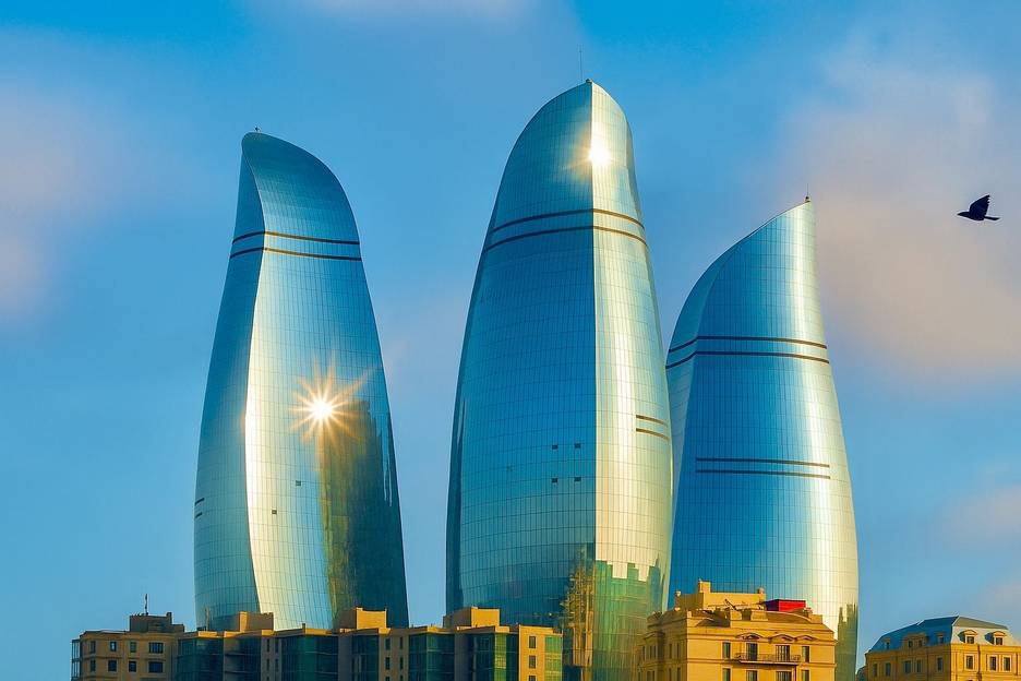 Из окон открывается вид на символ современного Баку, башни «Flame Tower» и мечеть «Teze Pir»