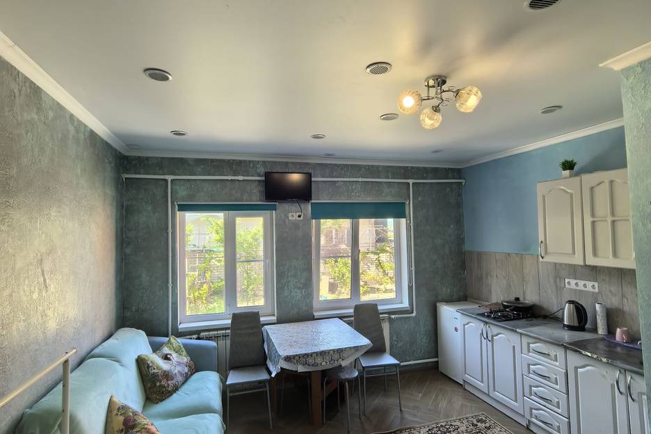 Все великолепно. Отличные условия: очень просторный номер, везде чистота. Расположение понравилось: от моря на расстоянии, поэтому ни шума, ни толп отдыхающих: тихий спокойный отдых. Для детей есть дворовая территория, батут. Магазины в шаговой доступности: Магнит и Красное и белое, работали допоздна.. (Возможно, есть и другие - но эти как раз около дома по пути с моря). Сразу при заселении в номере была минералка, чай-кофе-сахар, пакетики с гелем и шампунем, - чтоб люди могли отдохнуть и освежиться с дороги. Вроде, мелочи, но так приятно. И вообще, если что-то понадобится, даже не предусмотренное гостиничными услугами, все доставляется по первой просьбе. Кухня на три номера, но почти всегда пустовала. (Сама я тоже не готовила: в Новороссийске столовые и кафе на каждом шагу). Изоляция отличная: соседей не слышно.