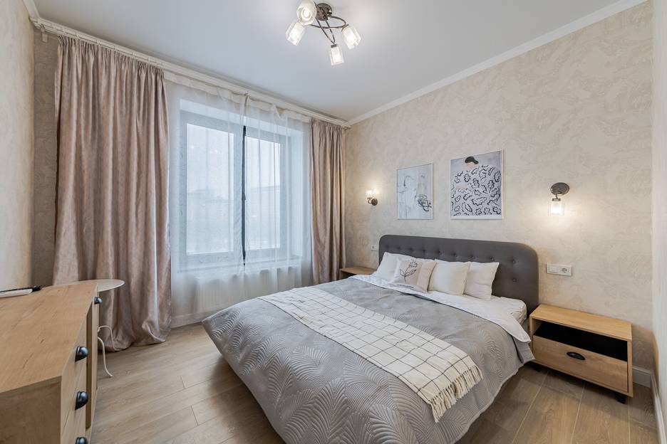 Дизайнерская квартира в новом ЖК Царская площадь - современный жилой комплекс бизнес-класса в северной части столицы.На территории комплекса есть вся необходимая инфраструктура - рестораны и кафе, фитнес-центр, продуктовые магазины.Квартира наполнена всей необходимой мебелью и техникой для комфортного проживания: удобная двухспальная кровать, раскладывающийся диван во второй комнате, скоростной WI-FI, оборудованная кухня с духовкой, плитой, СВЧ и посудомоечной машиной, полный комплект посуды для приготовления и приёма пищи.