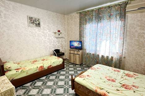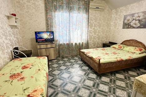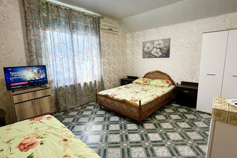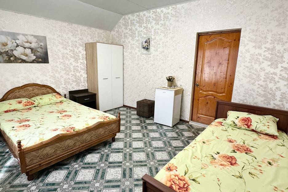 На этаже четыре комнаты с кухней (две комнаты с душевой и две комнаты с общей душевой). В каждой установлена необходимая мебель и принадлежности для комфортного отдыха, кухня оборудована техникой и посудой. Имеется терраса с видом на горы и детский уголок с развивашками. Собственный двор располагает стоянкой для автомобилей (это важно, вам не придется искать парковочное место вне территории. Бронируйте парковку предварительно!). Имеется мангал.