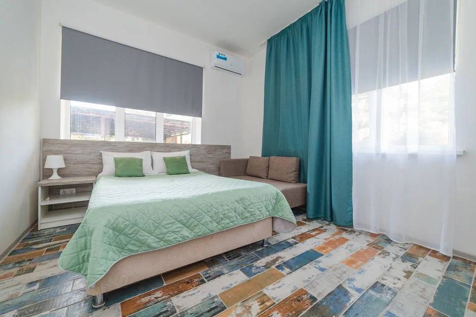 Уютные3-местные апартаменты на 1 этаже — идеальный вариант для комфортного отдыха без лишних подъёмов по лестнице. Пространство площадью 30 кв.м включает отдельную спальню, кухню и ванную комнату.
