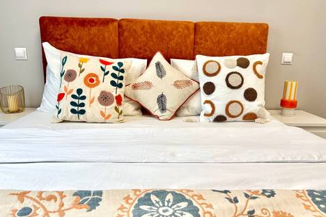 Очень удобно в 10 м от моря расположена, вид из окна на соседнюю улицу. Преимущество, что пляж в этом месте шире, чем напротив центра города и людей чуть меньше. Все необходимо в квартире есть, чисто, удобно, из продуктов только пакетики чая . Единственный минус - это вторая кровать, расположенная на кухне, состоит из двух частей-подушек, стык между которыми - провал примерно 5 см. Пришлось затыкать его полотенцем в рулоне. Мы расчитывали на 2 заявленных кровати, но лучше этого не делать. Максимум - годится для ребенка, которому не будет мешать шум от холодильника. Вторая двуспальная кровать удобная, с хорошим матрасом.