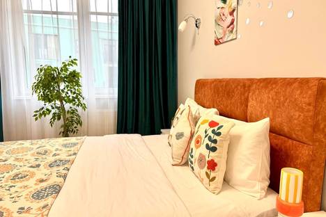 Квартира оформлена в светлых тонах, с яркими элементами современной мебели. Комнаты изолированы: в спальне двуспальная кровать, а на кухне раскладной диван 160х200, что позволяет разместить до 4-х человек. Санузел совмещен, имеется душевая кабина.