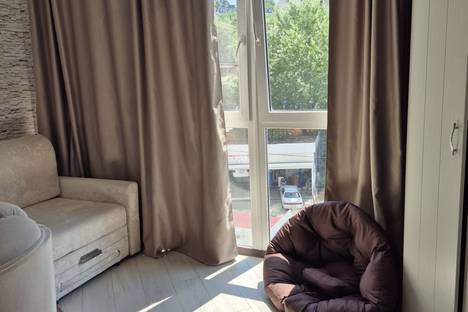 Квартира-студия находится в центре Сочи, до моря 30 минут пешком, до вокзала 7 мин.(от вокзала легко добраться до всех достопримечательностей : Красная поляна, Роза хутор, Олимпийские обьекты, до прогулочной ул.Навагинская 7 -10 мин. парк Ривьера 30 мин., напротив комплекса автобусная остановка, на территории комплекса находятся: магазины, аптеки, салоны красоты, фитнес, детская площадка