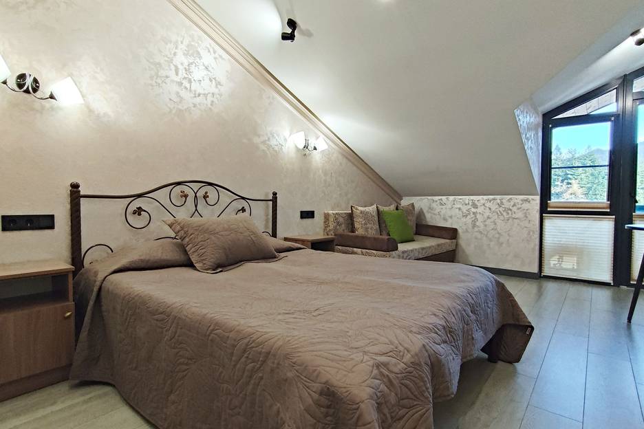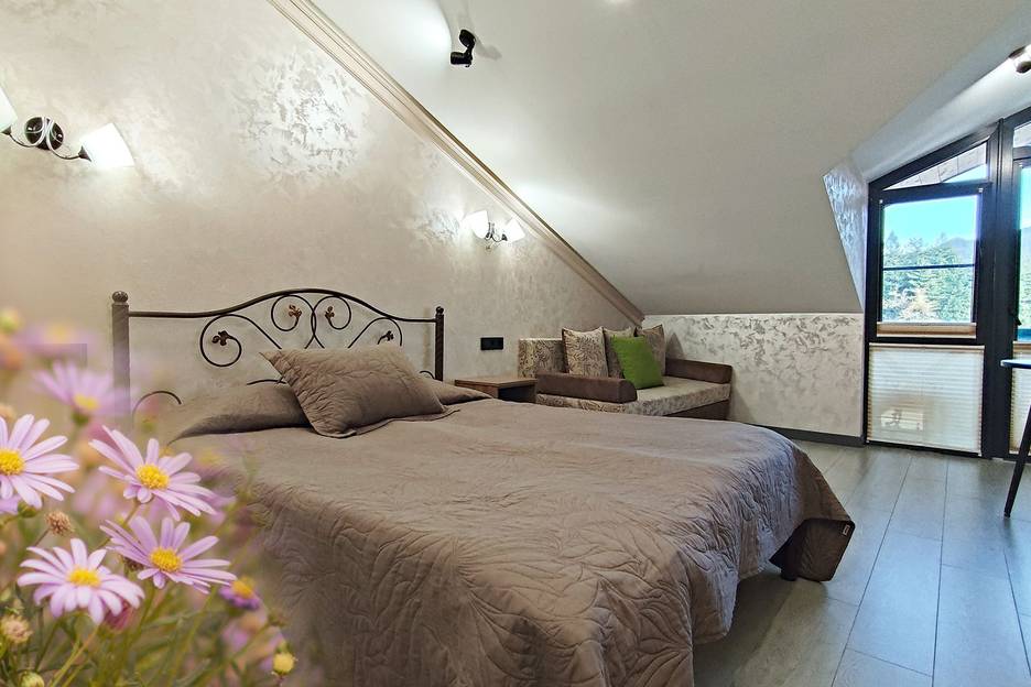 Мансарда оказалась невысокой и по этой причине не очень удобной для моего спутника (190).