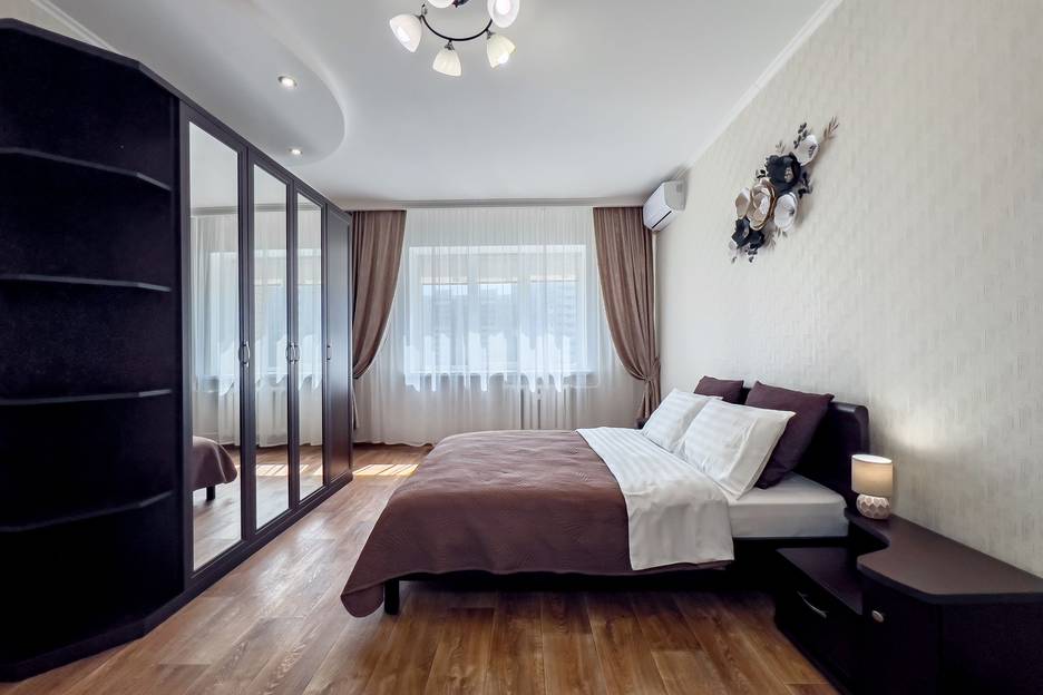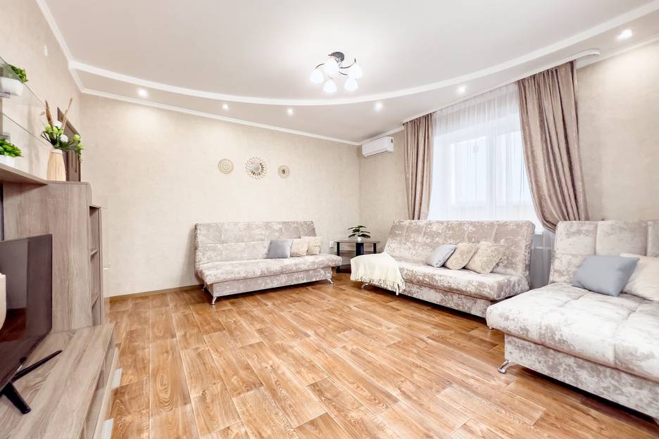 - Двуспальная кровать (отдельная спальня) + 2 двуспальных дивана и 1 односпальный (зал) + 1 двуспальный диван (отдельная спальня) - размещение до 9 гостей