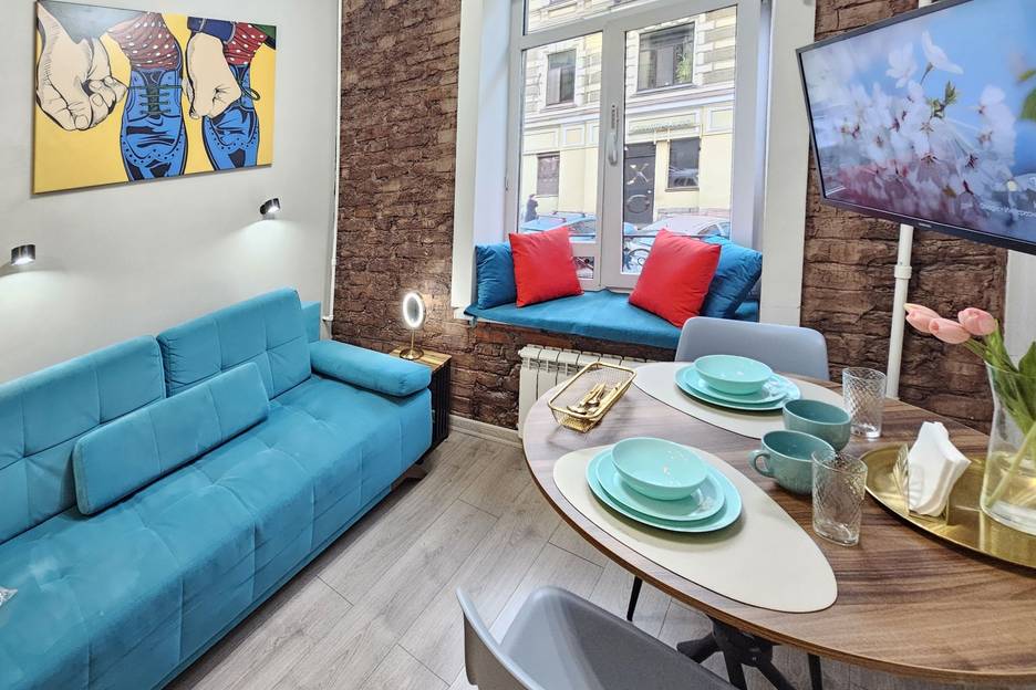Студия в центре (метро 5 мин, Невский и Фонтанка 300 м). Скидка 15% при продлении. Бесплатный WiFi, smart TV, чай, кофе, сахар, сливки.