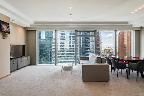 Апартамент расположен на 29 этаже комплекса "Город Столиц", в башне Москва. Имеет самый дорогой во всех смыслах вид на комплекс башен Москва Сити. Оборудован современной итальянской мебелью, всей необходимой техникой и электроникой. Система климат - контроль, шторы blackout, бесплатный Wi-Fi, большой раздвижной стол, стиральная и сушильная машины, ТВ, утюг, сушка, гладильная доска. Также в наличии вся необходимая посуда. По запросу возможны два дополнительных спальных места.