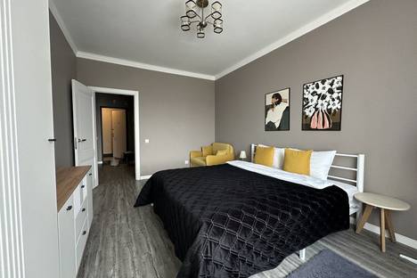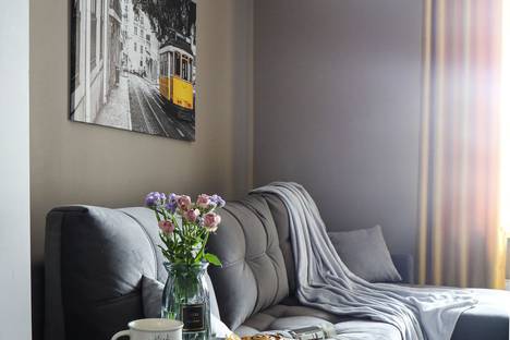 В квартире со стильным дизайнерским решением комфортно могут разместиться пять гостей.