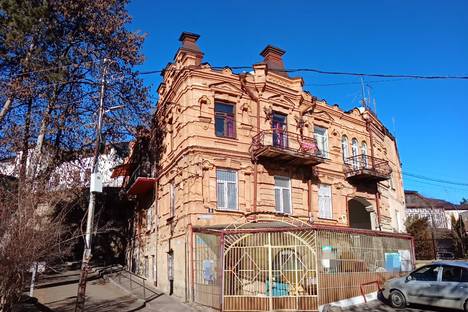 Квартира расположена на втором этаже старинного дома (Дом Финкейзеров) дореволюционной постройки с высокими потолками (h 3,4 м); окна и балкон выходят на берег горной речки. Общ.площадь квартиры 41 кв.м.