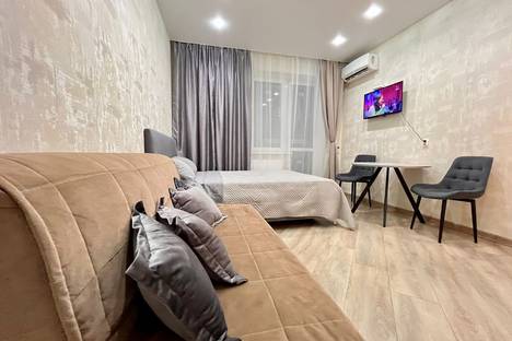 Квартира-студия со всеми удобствами в Районе парка Галицкого и стадиона ФК Краснодар. Возможность размещения 2-4 гостей, двухспальная кровать и двухместный диван. Витражное окно с прекрасным видом на город. Уютно по домашнему!
