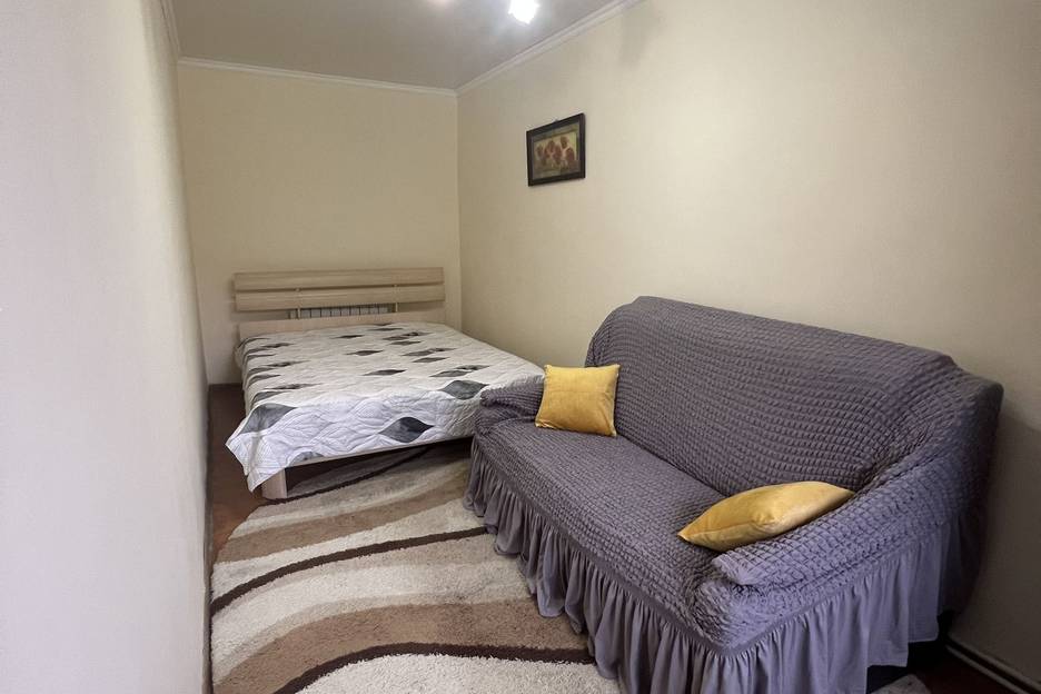 Имеются 4 спальных места: двуспальная кровать и раскладной диван.