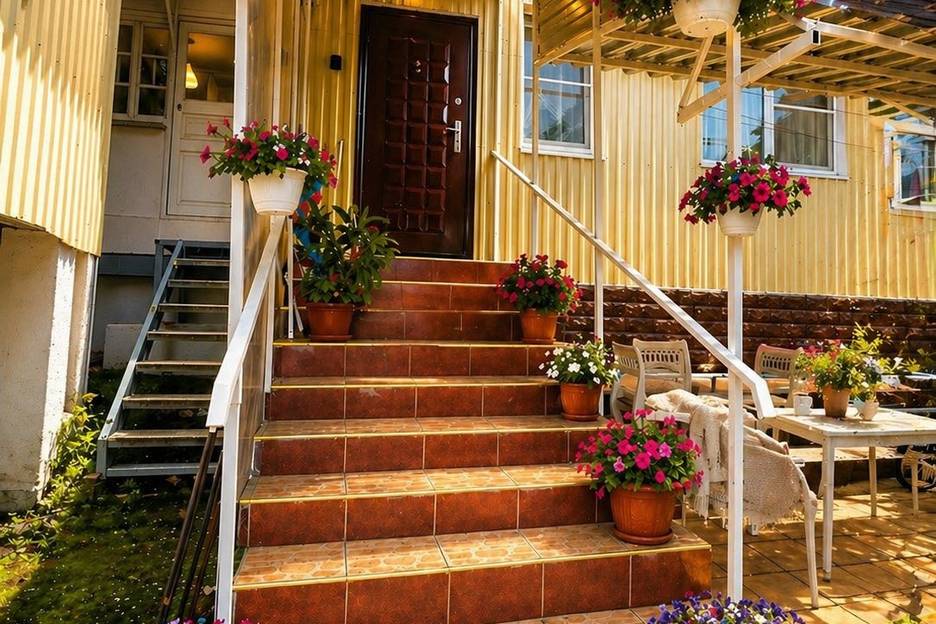 Уютный двор с цветами