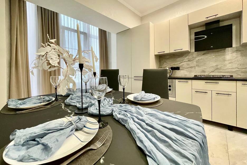 Отдыхали с 30 сентября по 8 октября 2025 года. Квартира имеет очень удачную локацию, расположена практически в центре на Курортном бульваре. Сама квартира небольшая (особенно санузел), но есть всё необходимое для временного проживания. В межсезонье было ценно наличие отопления (теплый пол). Есть газовая плита, стиральная машина, холодильник, микроволновка, утюг, фен, эл.чайник, вся необходимая посуда и даже бытовая химия.