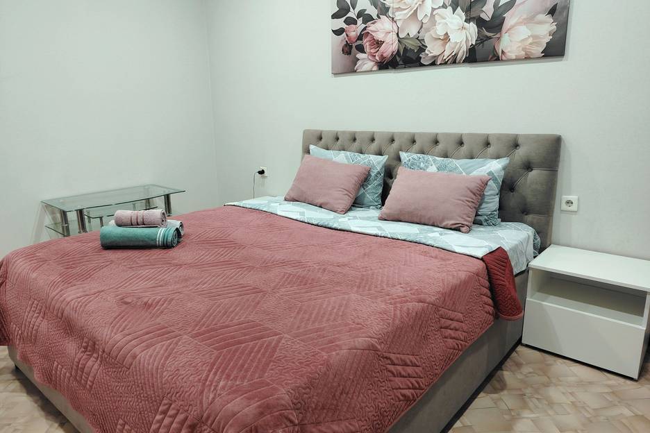 Светлая, уютная квартира в новом микрорайоне, расположение которого позволяет в кратчайшие сроки попасть в любой район города! В шаговой доступности супермаркеты, стоматологические клиники, салоны красоты, продуктовые магазины, банки, аптеки, остановки общественного транспорта, собственный парк с фонтаном и огромным детским городком и др. Мы создали для Вас всё необходимое для комфортного проживания и отдыха. В квартире имеется телевизор, большая двуспальная кровать ортопедическим матрасом. В стоимость услуг для Вас включено чистое отглаженное постельное белье,полотенца, беспроводной интернет (Wi-Fi). На кухне в наличии вся бытовая техника и посуда. При необходимости для Вас оформляются отчётные документы.