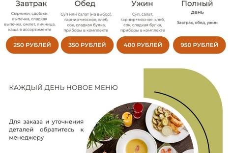 ✅ Питание под заказ (за 12 часов): завтрак, обед, ужин
