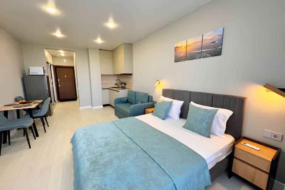 Апартаменты 37 кв.м расположены в ЖК 7 небо по адресу: г. Анапа, Пионерском проспекте, 3Г.