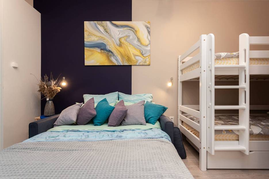В квартире с комфортом могут разместиться четыре человека.