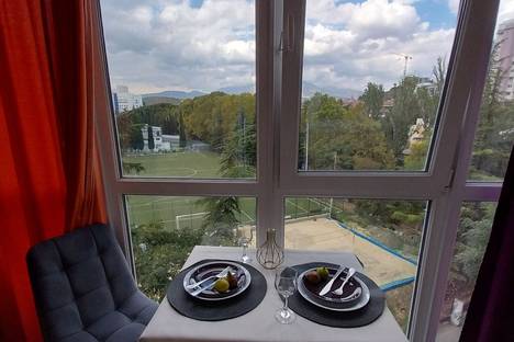 1-комнатная квартира, а фактически двухкомнатная по цене однокомнатной. На лоджии вторая спальня. Есть двухспальная кровать, двухспальный диван. Все удобства, вся техника, кондиционер, вайфай. Панорамные окна. Дом в Приморском парке, Первая линия - 150 м до моря, 600 м до центра Алушты. Рядом дельфинарий, веревочный городок, детские аттаркционы, центральная набережная, столовая по-домашнему. В доме продуктовый магазин, аптека, кафе. Не солнечная сторона, не бывает жарко. Великолепный вид из окна на горы.