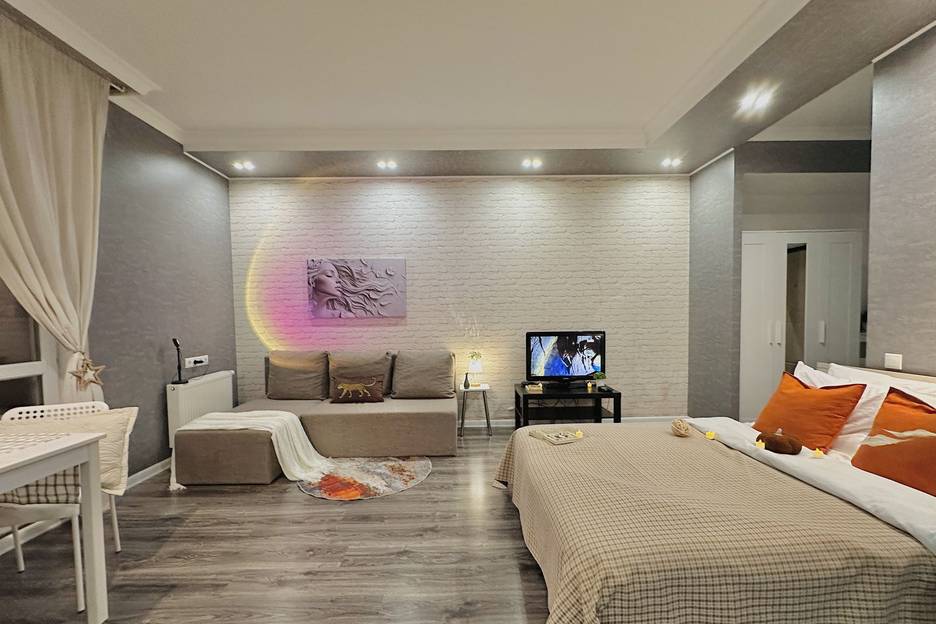 Квартира объединяет уют и современный дизайн: открытая планировка, продуманные детали и функциональные решения создают атмосферу легкости и комфорта. Здесь удобно разместятся до 4 гостей