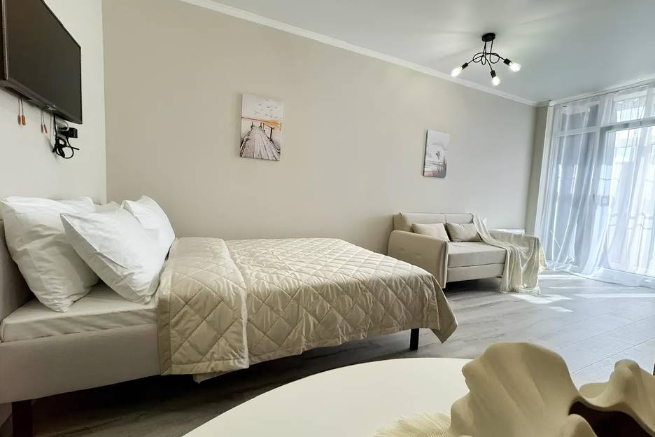 Спальная зона: Кровать двухспальная с ортопедическим матрасом 140*200, раскладной дивана 140*200, ТВ, шкаф, утюг и гладильная доска, сушилка для белья.