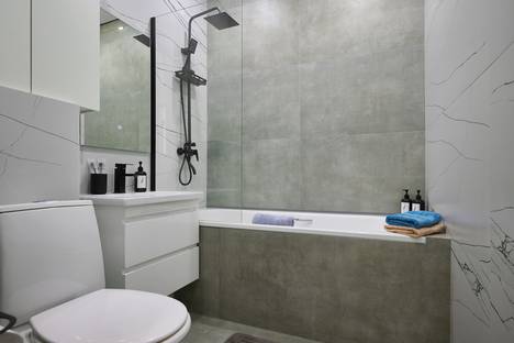 Кухня полностью оборудована бытовой техникой: микроволновая печь, электрическая плита, холодильник, электрический чайник, фильтр для воды, полный набор посуды и столовых приборов, а так же для гостей бесплатно доступен чай со вкусняшками, сахар, специи и конечно же гель для мытья посуды. В ванной для гостей доступно: шампунь, гель для душа, мыло, фен, стиральная машина, чистые и мягкие полотенца для каждого гостя. И конечно в доступе есть утюг и гладильная доска.