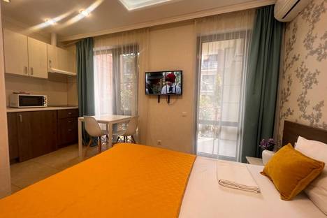 Апартаменты находится центре Курортного городка в 250 метрах от моря. На территории комплекса имеется детская площадка, открытый бассейн, много зелени. В непосредственной близости океанариум, дельфинарий, аквапарк, летний кинотеатр, динопарк, террариум, теннисные корты, спортивные площадки, бассейн (закрытый и открытый), различные детские площадки, аттракционы, столовые, кафе, рестораны, магазины “Перекрёсток”, “Магнит”, “Fix Price”, аптеки, Сбербанк.
