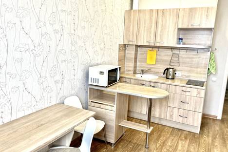 2х ком студия на 17 этаже 25 этажного дома в центре с шикарным видом на центр и Октябрьский район. Рядом ТРЦ Аура, Центральный парк, НИИТО, Оперный театр. В гостиной 2х спальная кровать, телевизор, столы, стулья, интернет WiFi.В бывшей лоджии, переоборудованной, кровать, шкаф, тумба. В комнате с кухонной зоной 2х спальный диван, кухонный гарнитур с варочной панелью, микроволновка, чайник, вся посуда. В прихожей холодильник. В санузле стиральная машина-автомат. Курить можно на общем балконе, дверь на который находится сразу за входной в квартиру. Залог 2000руб (возвращается при благополучном проживании)