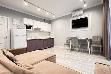 Наши апартаменты оснащены всем необходимым для комфортного пребывания: утюг, гладильная доска, стиральная машина, кондиционер, сушилка для белья, фен. И, конечно же, бесплатный Wi-Fi и телевизор 43 дюймов со Smart TV для вашего удобства.