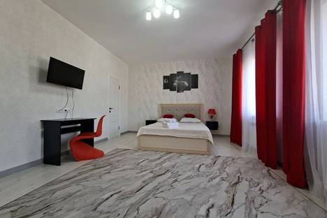 В номере свой сан. узел с душевой, двуспальная кровать и раскладной диван , две прикроватные тумбочки , а два окна позволяют максимально наполнить комнату солнечным светом, большое количество розеток, в том числе компьютерная, расположенные в удобных местах, Smart TV , кондиционер, фен. Для 4-х номеров рядом находится кухня на которой есть вся необходимая бытовая техника, мебель, посуда, столовые приборы.