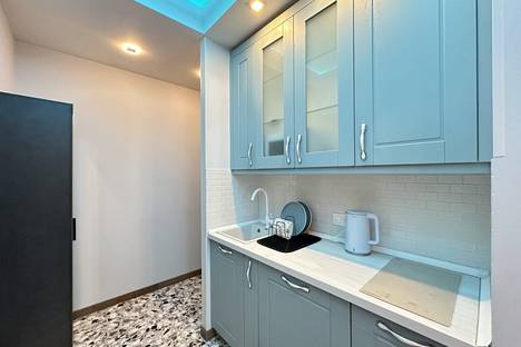 Квартира оснащена современной мебелью и оборудованной кухней.