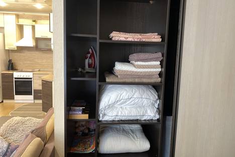 В квартире имеется удобная кровать с ортопедическим матрасом, а также красивые вместительные шкафы. Все для удобного проживания! Телевизор с WiFi, холодильник, микроволновка, чайник, стиральная машина, фен.