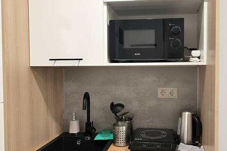 Готовьте с удовольствием: Вас ждет полноценная кухня со всей необходимой техникой: индукционная плита, микроволновка, холодильник, чайник, , кофеварка, необходимая посуда.