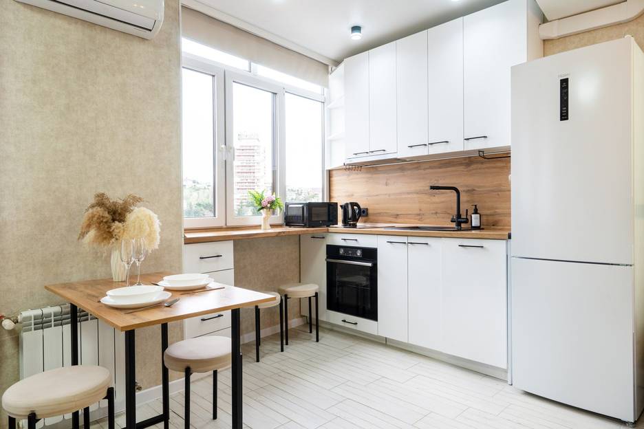 ➮ Разнообразная техника: посудомоечная машина, холодильник, СВЧ, электрическая плита и вытяжка, чайник;