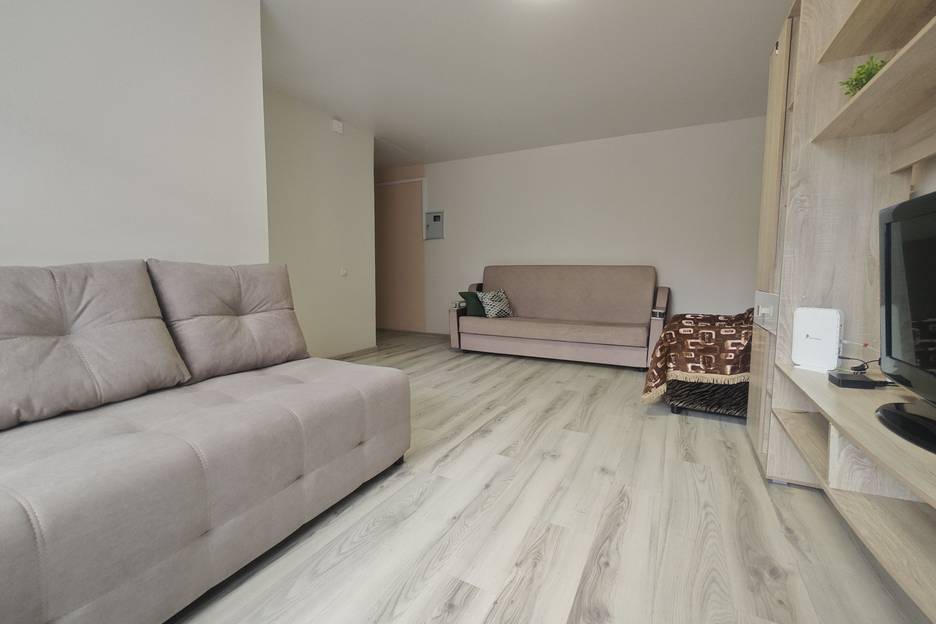 В квартире могут разместиться до 4 человек (двуспальная кровать и диван).