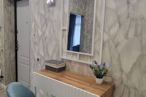 В коридоре: встроенный шкаф, сейф, робот-пылесос, утюг, гладильная доска, сушилка, одноразовые тапочки, халаты, швейные наборы. Также в коридоре установлен кондиционер на охлаждение и обогрев, система кондиционирования работает по всей площади квартиры.