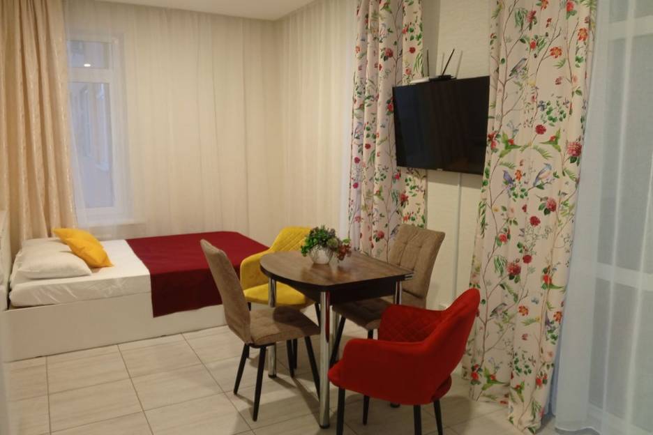 Просторная светлая студия оборудована всем необходимым для отдыха - двуспальная кровать, односпальный диван и двуспальный диван плюс раскладушка, в ванной есть стиральная машина, фен, гладильные принадлежности, кухня оборудована варочной панелью, большим холодильником, микроволновкой и чайником. В доме расположен минимаркет, пивная, салон красоты, пвз. Рядом есть детские площадки, рынок, пекарня, жд вокзал и остановки общественного транспорта. Дорога к морю займет 17 минут прогулочным шагом, ближайшие пляжи - пляж жд адлер и пляж депо, чуть дальше пляж апельсин. Достопримечательности рядом - океанариум, дельфинарий, ачигварское озеро, олимпийский парк и многое другое. ВАЖНО: с животными принимаем после согласования, курить можно в специально отведенных местах. Будем рады принять вас в гости:)