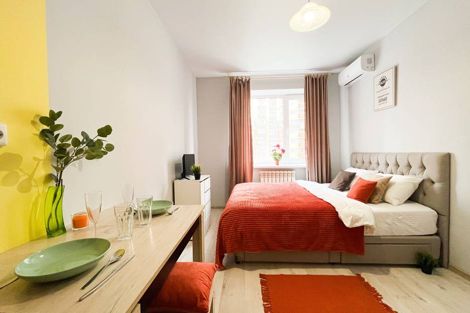 уютная студия. Есть все необходимое. до автовокзала недалеко даже пешим ходом. У дома остановка трамвая 10 и 6.