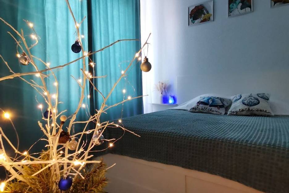 Просторная квартира, площадью 58 кв.метров, вмещает максимум 6 человек: есть 2 двухспальные кровати с ортопедическими матрасами и диван.