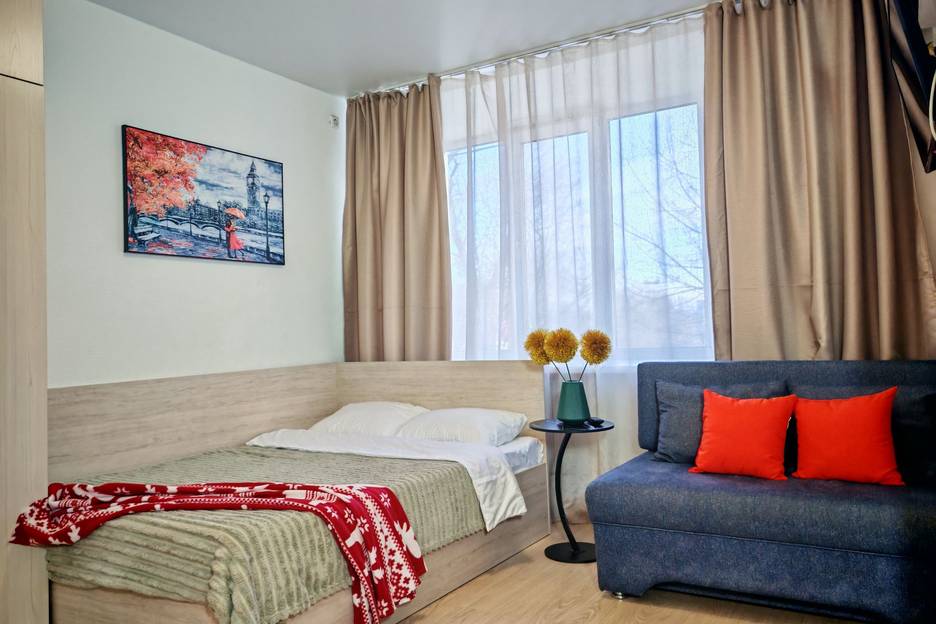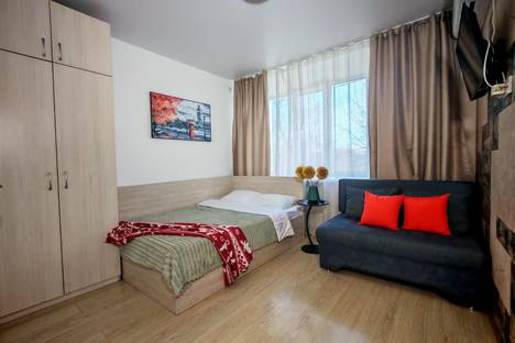 Современная студия с ремонтом, новой мебелью и техникой во Владивостоке расположена в экологически чистом районе города, в 5 мин от моря.