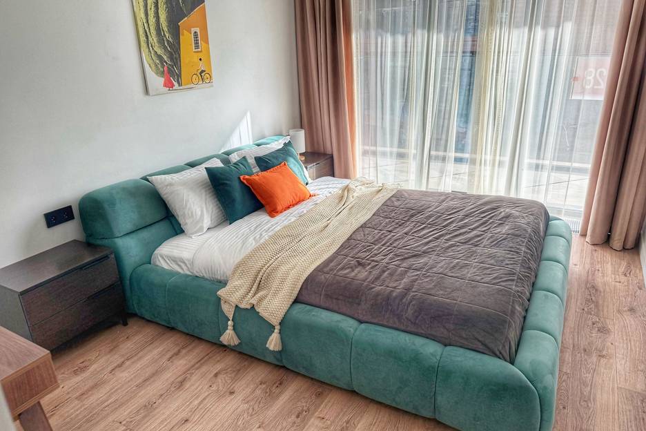 Пространство: Предлагаются три просторные комнаты, каждая из которых отличается функциональностью и уютом. Просторная главная спальня оснащена большой кроватью размером 180×200 см с комфортным ортопедическим матрасом и изысканным комплектом белья премиум-класса. Здесь же туалетный столик с зеркалом. Вторая комната идеально подходит как для семейной пары, так и для компании друзей благодаря двум отдельным кроватям 90х200 см, которые можно соединить в одно большое ложе.