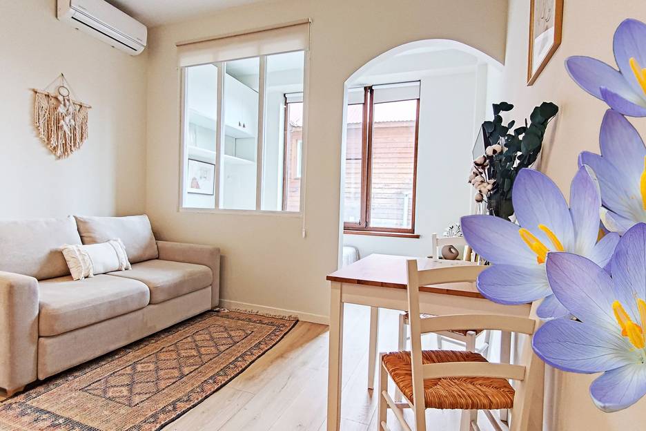 Апартамент студия с идеальной планировкой - S=30 м2. Полноценная спальная с панорамным видом на горы. Гостиная с диваном и зоной ТВ. Кухня с обеденным столом. Санузел с ванной. Расположена на 2 этаже. Дизайн в стиле Бохо.