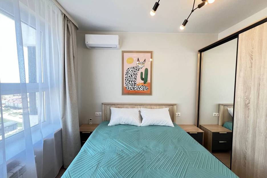Оборудование: кухонная техника и посуда, посудомоечная машина, стиральная машина, кондиционеры в каждой комнате, Smart TV, шторы полный блэкаут в спальне.