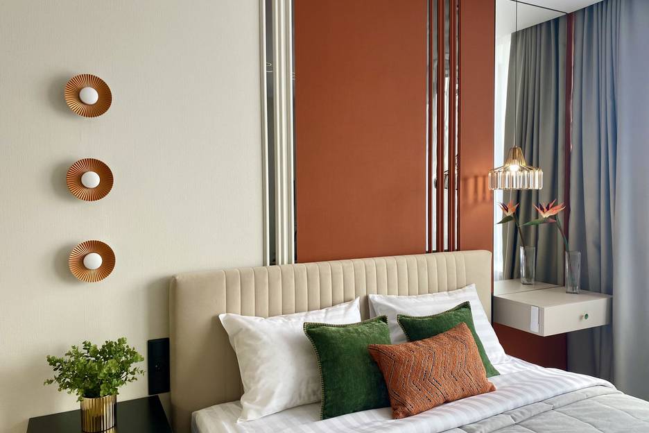 После долгих прогулок по городу вы сможете насладиться просмотром любимых фильмов на большом телевизоре со Smart-TV (подключены онлайн-кинотеатры Кинопоиск, Okko, Wink), а умная колонка Алиса разбудит, развлечет вас музыкой и играми.