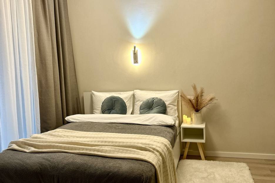 ОПИСАНИЕ ОБЪЕКТА: Квартира 32 кв.м с личной террасой вмещает до 4 человек. ✔️ Спальные места: Двухспальная кровать 140*200; Кресло-кровать 80*200;