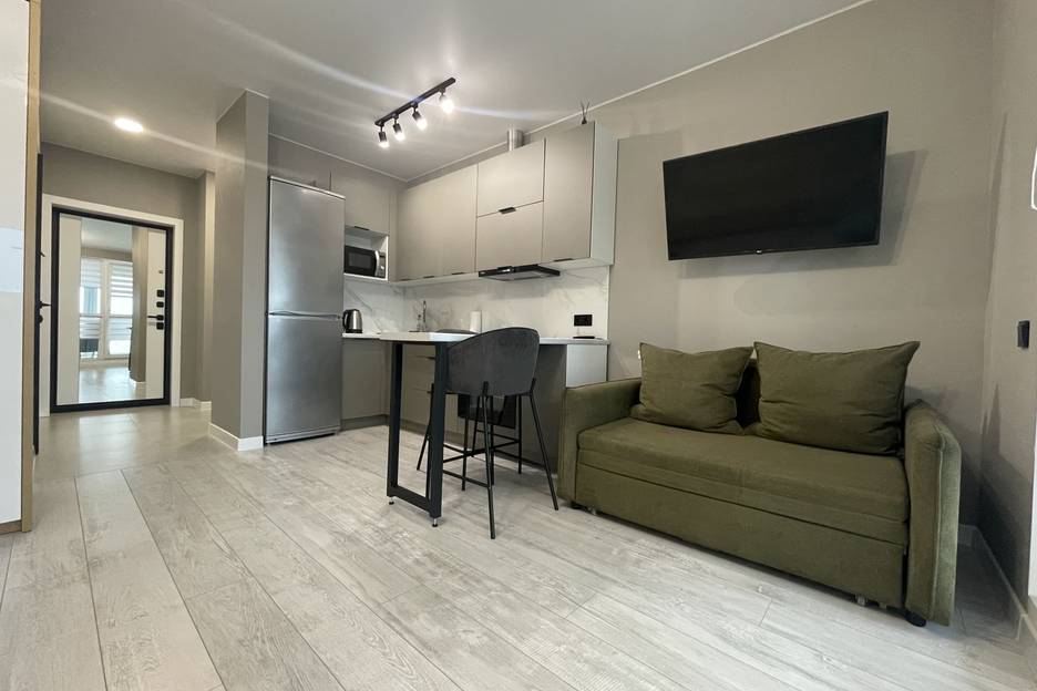 Квартира-студия в новостройке ЖК "Минск-Мир". До метро "Аэродромная"10 мин. пешком. До жд вокзала на метро 2 станции. До центра на машине 10 мин.