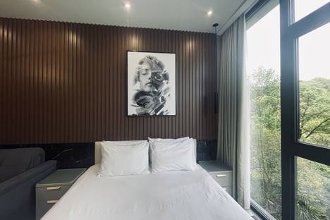 Стильная студия с видом на парк Дендрарий. Находится на 1 этаже ЖК «Метрополь». В квартире есть большая двуспальная кровать, которая при необходимости превращается в 2 односпальные. На диване удобно размещаются двое детей, двоим взрослым может быть немного тесновато. Есть большой ТВ, вайфай, кондиционер, кофемашина, стиральная машина. Столешницу под телевизором можно использовать как рабочее место или туалетный столик. Вся необходимая посуда есть. Сдается на срок от 2-х дней, при бронировании на 1 сутки доплата за уборку 1000 руб.