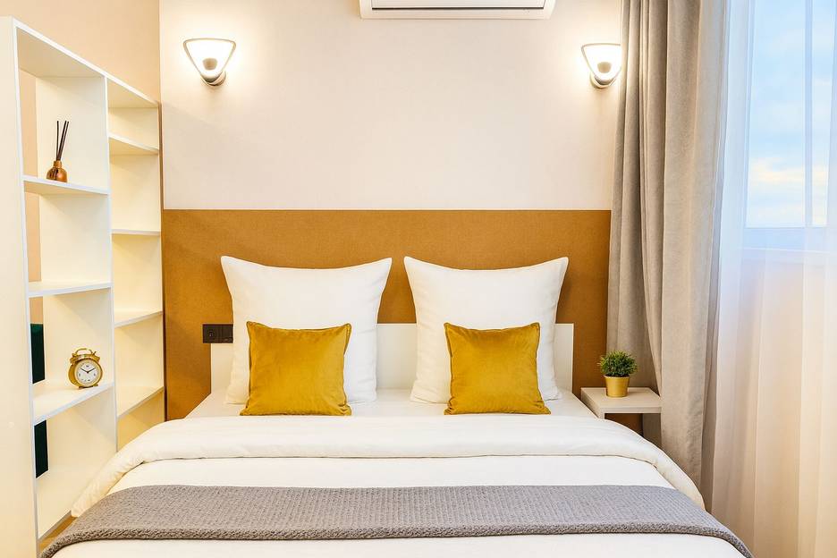 - бытовую технику (кондиционер, телевизор smart tv, холодильник, плита, стиральная машина, утюг, фен, электрический чайник, микроволновка, wi-fi)